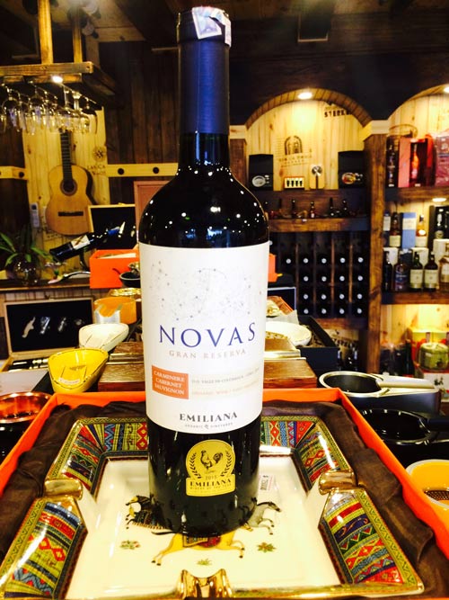 Rượu vang Novas Gran Reserva Cabernet Sauvignon, nhà Emiliana, tọa lạc bên bờ Nam của sông Maipo, Chile. Vang Novas là dòng vang sinh thái (hữu cơ) thân thiện với môi trường, trồng trọt bền vững, không thuốc trừ sâu và thuốc diệt cỏ.